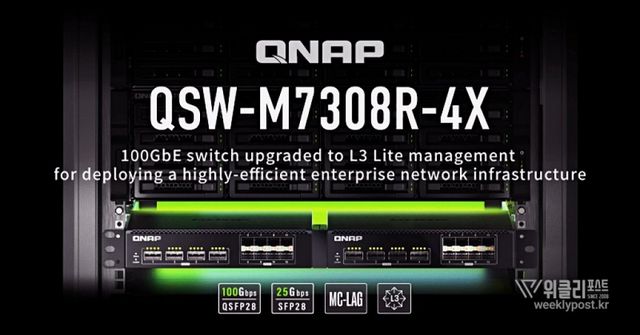 큐냅(QNAP)이 100 GbE 관리형 스위치 QSW-M7308R-4X를 발표했다. 중단 없는 스위치 네트워킹을 보장하기 위한 MC-LAG 이중화 기능으로 4K/8K 비디오 스트리밍, 빅데이터, AI 및 AV-over-IP를 포함한 고대역폭 애플리케이션을 가속화한다.