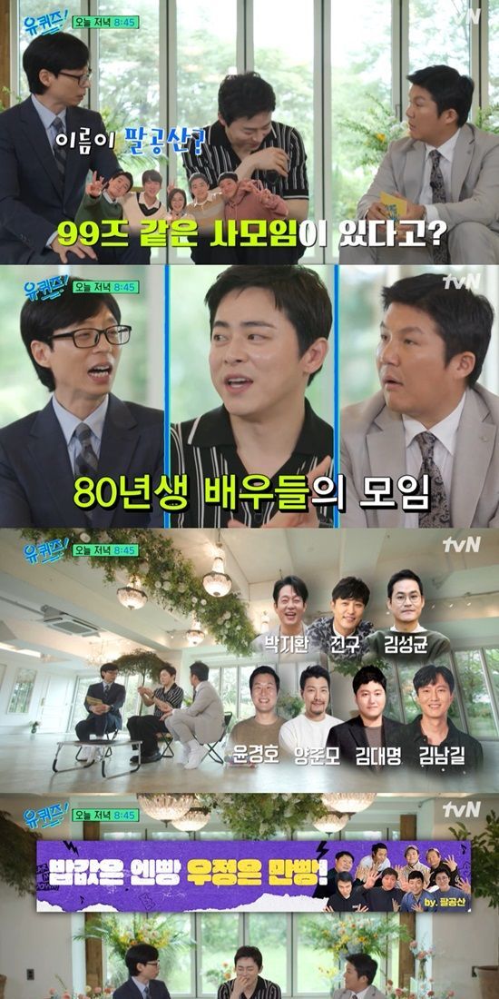 조정석은 "80년생 배우들의 모임이다. 박지환, 진구, 김성균, 윤경호, 양준모, 김대명, 김남길.이렇게 있다"며 모임을 공개했다.