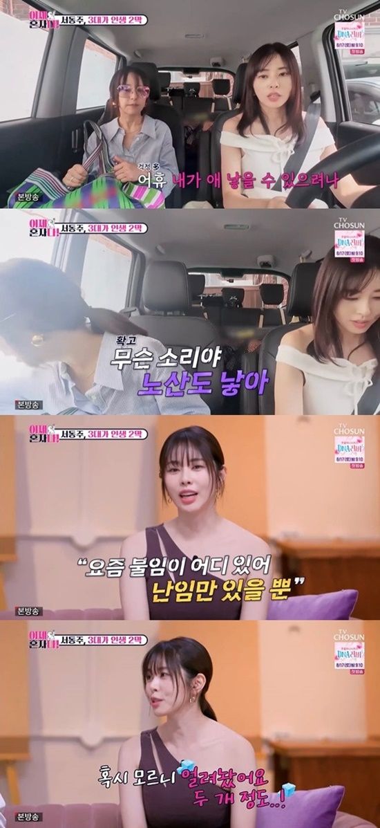 이에 서동주는 "지금 만나는 사람과 계속 만나면 그렇게 방향이 되지 않을까 싶다"면서 "주변에서 '요즘 불임이 어딨냐. 난임만 있을 뿐'이라면서 용기를 주신다. 내가 아이를 낳을 수 있을까 싶지만, 혹시 몰라서 냉동 난자 2개 정도를 얼려놓은 상태다"라고 덧붙였다.