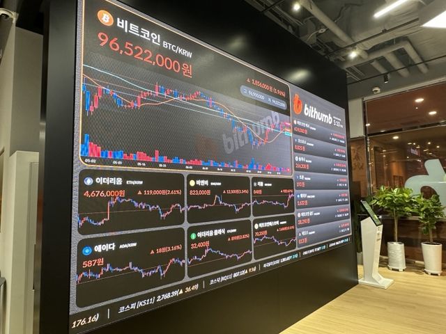 빗썸라운지 강남점 대형 전광판. 사진=강준혁 기자