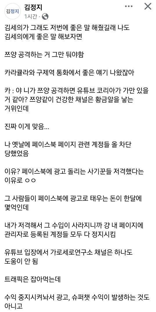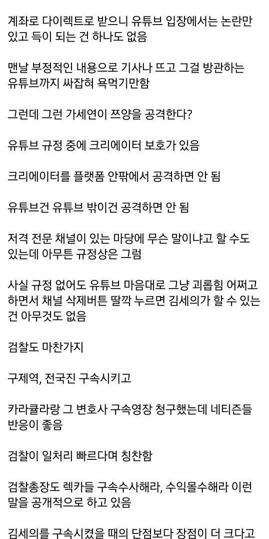 김세의 너는 수익 창출도 안 되고 후원도 계좌로 받아서 트래픽만 발생하니 유튜브에 도움이 크게 안 됨.