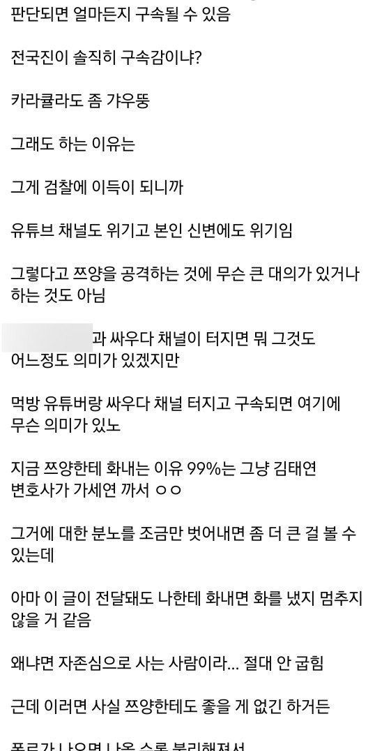 쯔양 공격하는 거 멈춰라.