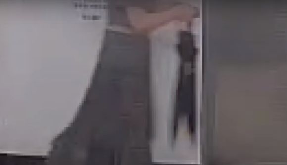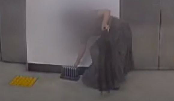 해당 여성은 잠시 뒤 다시 돌아와 우산꽂이까지 가져갔으며 잠시 뒤에는 벽에 붙은 안내문까지 떼어버렸다.