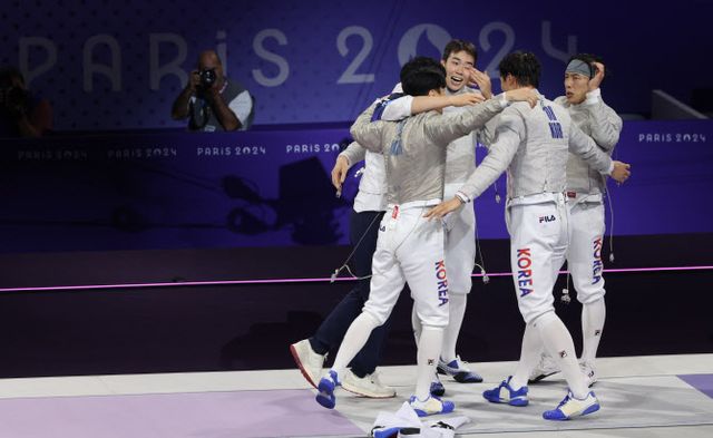 오상욱(27·대전광역시청), 구본길(35·국민체육진흥공단), 박상원(23·대전광역시청), 도경동으로 구성된 남자 사브르 대표팀은 1일(한국시간) 프랑스 파리 그랑팔레에서 열린 대회 단체전 결승에서 헝가리를 45-41로 제압하고 우승을 차지했다.