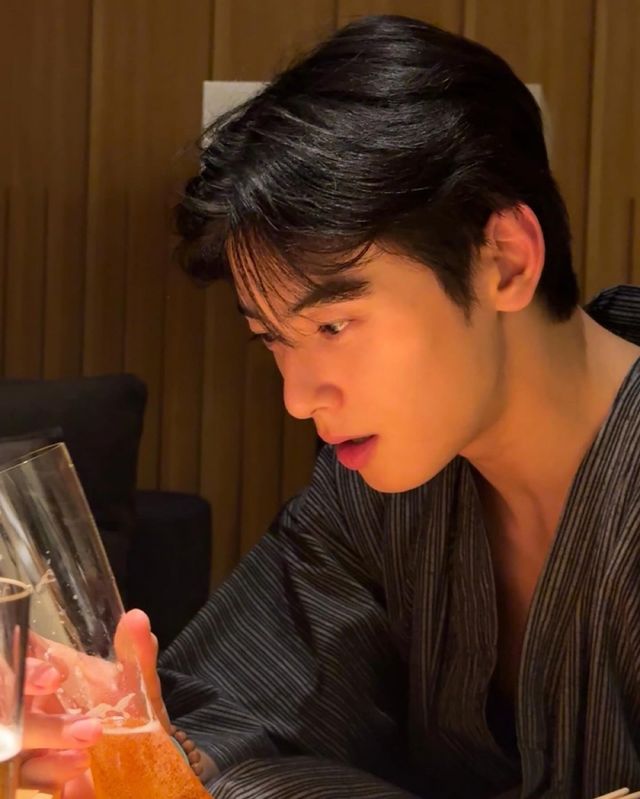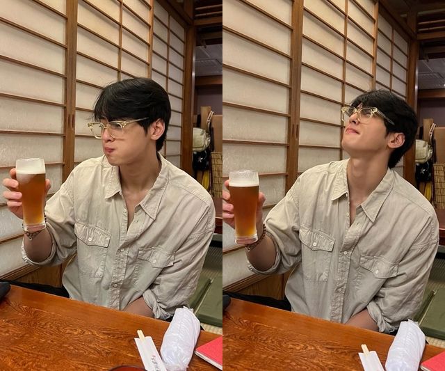 공개된 사진 속 차은우는 음식점 안에서 포즈를 취하고 있다. 차은우는 맥주를 마시며 화보 같은 비주얼을 뽐내 팬들의 시선을 사로잡았다.