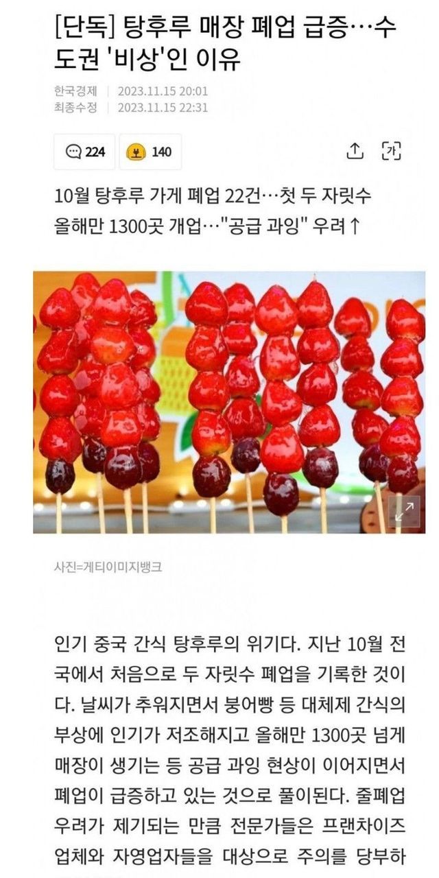 탕후루 매장 폐업 급증…수도권 '비상'인 이유