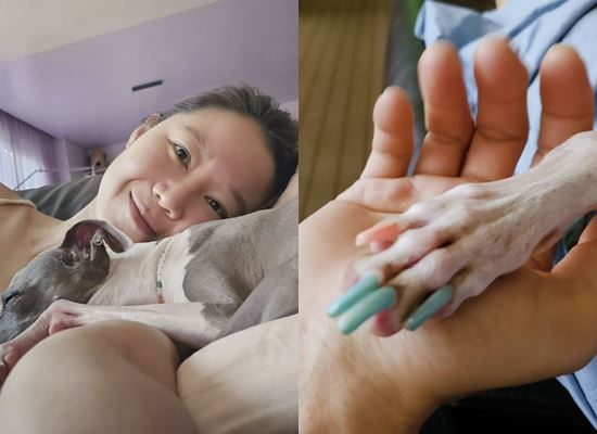 공개된 사진에는 발톱에 패디큐어를 한 공효진 반려견의 모습이 담겼다. 공효진은 자신의 손 위에 반려견의 발을 올려둔 뒤 인증샷을 남겨 시선을 집중시킨다.