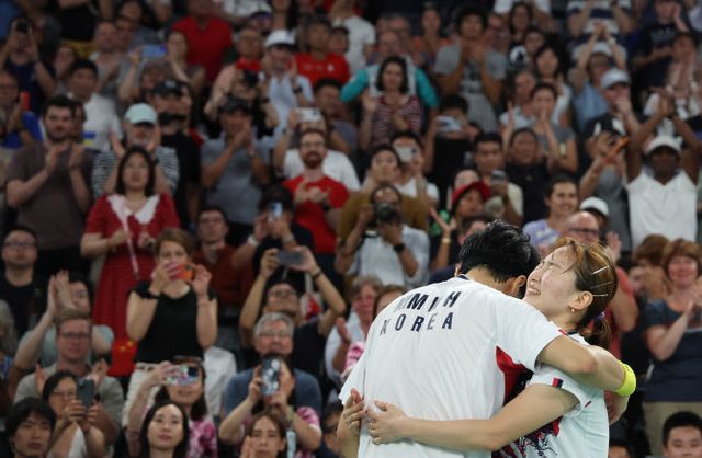 [이데일리 박지혜 기자] 우리 선수들끼리 만난 2024 파리 올림픽 배드민턴 혼합복식 준결승에서 치열한 접전 끝에 김원호(삼성생명)-정나은(화순군청) 조가 결승에 진출하며 은메달을 확보했다.