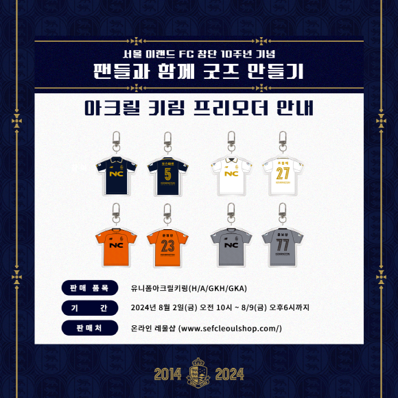 [풋볼리스트] 김동환 기자= 서울이랜드가 팬들과 함께 만든 창단 10주년 기념 굿즈 ‘유니폼 아크릴 키링’을 한정 판매한다.