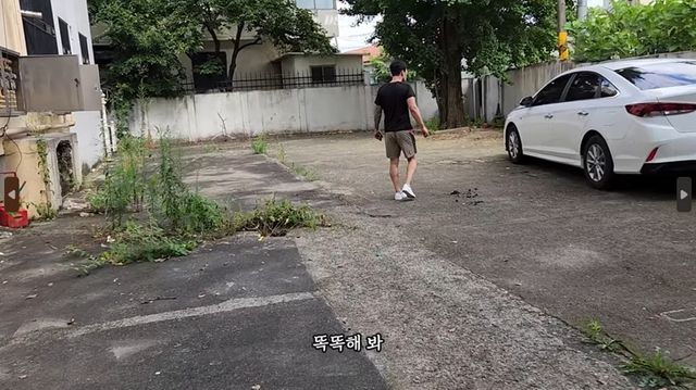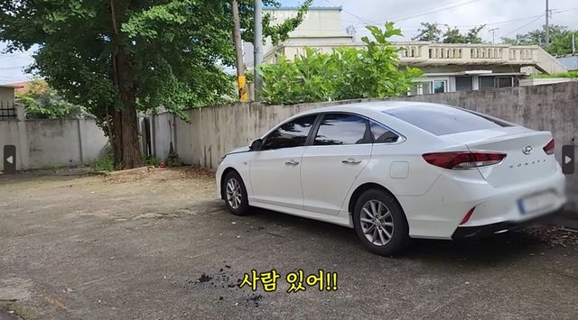 친구와 함께 사람이 살지 않는 것으로 보이는 빌라를 둘러보던 유튜버는 건물 뒤편에 주차된 흰색 차량에 시선이 갔다.