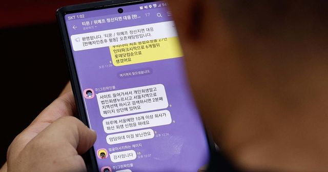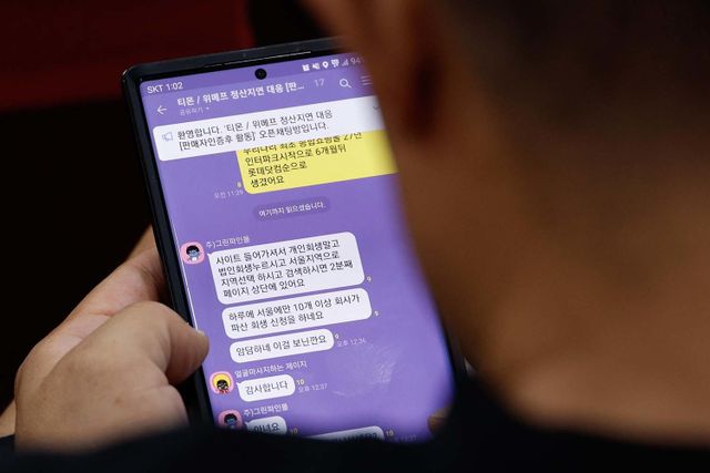 1일 오후 서울 여의도 국회의원회관에서 열린 티몬·위메프(티메프) 사태 소상공인 피해 대책 간담회에서 한 참석자가 티메프 정산지연 대응 오픈카톡방을 보고 있다. '하루에 서울에만 10개 이상 회사가 파산 회생 신청을 하네요' '암담하네'라는 메시지가 눈에 띈다. / 뉴스1