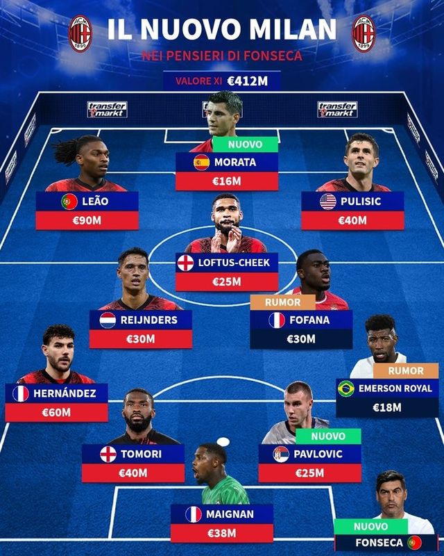 AC 밀란은 각 포지션에 필요한 선수들을 보강하고 있다. 올리비에 지루가 LAFC로 이적하면서 공격에 공백이 생겼고 모라타를 영입했다. 파블로비치를 데려오면서 센터백 숫자를 늘리기도 했다. 외에도 포파나, 에메르송 등에게 지속적인 관심을 유지하고 있다.