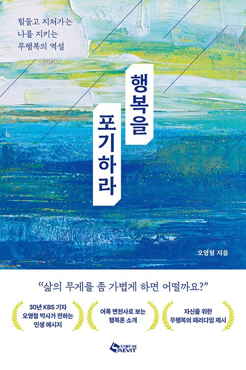 “행복하세요, 여러분. 행복하셔야 합니다.” 덕담이지만, 어쩐지 마음이 무거울 때가 있다. 행복하기 위해 해야 할 일이 너무나 많은 세상이라서. ‘행복’에 대한 강박 때문에 힘들어본 사람들에게 이 책은 해방처럼 여겨질 것이다. 제목부터 ‘행복을 포기하라’다. 저자는 KBS 기자로 30년 일하며 수많은 인간 군상을 접한 오영철 박사다. 그는 행복을 좇다가 오히려 불행해지는 사람들이 많다면 이제는 그 ‘행복하라’라는 주문에 제동을 걸 때가 됐다고 얘기한다. 그러면서 행복에 대한 집착을 내려놓고 삶을 가볍게 해보자고 제안하다. 책의 마지막 부록에는 행복론의 변천사를 소개하는데, 행복이란 결국 고정된 틀이 있는 것이 아닌 관점에 따라 변화하는 것이며 그래서 행복을 다시 사유하게 한다. ‘힘들고 지쳐가는 나를 지키는 무행복의 역설’을 만나보자.