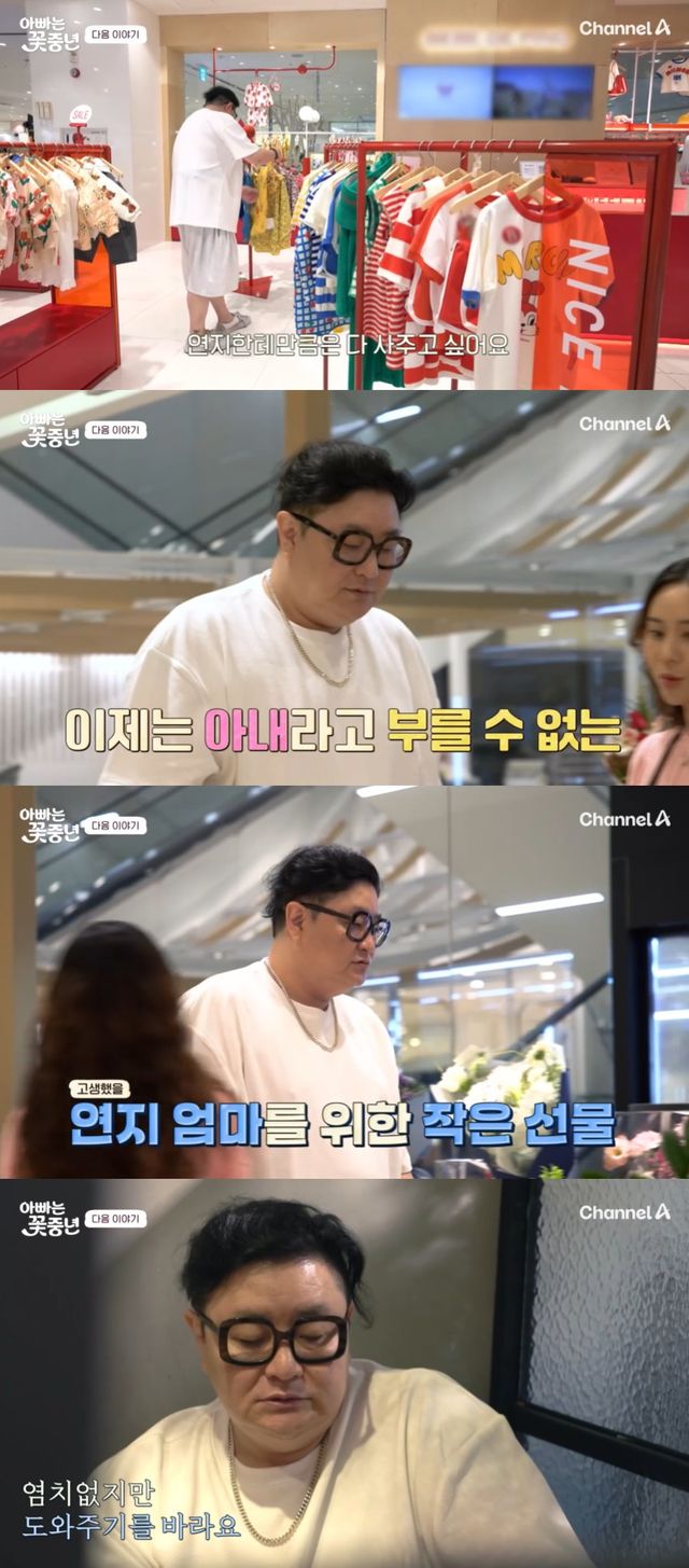 그는 딸 연지를 위한 선물을 준비하는가 하면 "처음 와 본다"며 전처를 위한 꽃다발까지 구매했다.