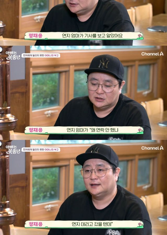 정재용은 박선주와 만나 전처와 연락한 근황을 털어놓기도. 그는 "최근 4월에 엄마가 돌아가셨다. 그런데 연지 엄마가 기사를 보고 알았다"며 부고를 알리지 않았었음을 밝혔다.