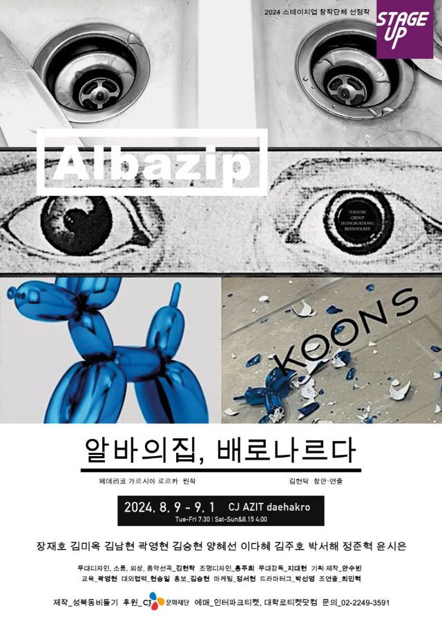스페인 작가 페데리코 가르시아 로르카의 희곡 ‘베르나르다 알바의 집’을 극단 성북동비둘기의 김현탁 연출이 재구성한 작품이다. 원작의 불꽃놀이 같은 사랑 이야기 속에 은폐된 노동에 주목한다. 누군가의 감시 아래 비정규직 노동으로 살아가는 청춘들의 작업 현장을 다룬다. 편의점, 요식업체, 배송업체, 물류업체, 키즈카페 등 동시대 한국 사회의 다양한 아르바이트 공간을 통해 우리 사회의 감춰진 환부를 그려낸다. 배우 장재호, 김미옥, 김남현, 곽영현, 김승현, 양혜선, 이다혜, 김주호, 박서해, 정준혁, 윤시은이 출연한다.