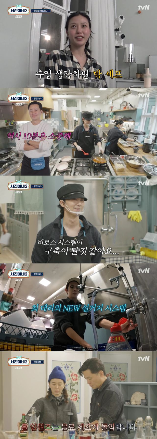 또한 최우식은 세제를 풀어놓은 물통에 설거지할 그릇을 1차로 불린 후 식기세척기에 넣는 설거지 시스템을 도입했다. 아이디어를 낸 최우식뿐만 아니라 정유미와 고민시도 설거지통을 애용하며 직원들의 만족도가 상승해 눈길을 끌었다.