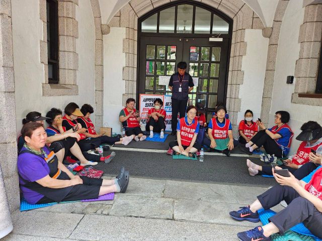 신촌역에서 걸어서 10분 연세대학교 정문을 지나 또 한참을 걷다보면 학교 본관인 언더우드관이 보인다. 담쟁이 넝쿨로 뒤 덮인 조화로운 건물들 가운데 위치한 파란 천막에는 "진짜 사장 연세대학교가 해결해야 합니다"라고 쓰여있다. 올해 초부터 한 끼 식대 2만원 인상을 요구하던 대학 청소노동자들은 7개월 째 고집을 피우고 있는 총장을 만나러 왔다. 그런데 학교는 본관의 문을 걸어 잠그며, 면담을 거부하고 있다. 그래서 연세대 청소노동자들은 그 앞에 천막을 설치하고 무기한 농성에 돌입했다. 현재 연세대는 식대 인상을 거부하는 것을 넘어 작년 말 정년퇴직한 청소노동자 3명의 자리를 충원하지 않고 있다. 이렇게 학교가 아낀 돈은 700만 원, 청소노동자 전체 식대를 2만 원 인상해도 남는 돈이다.