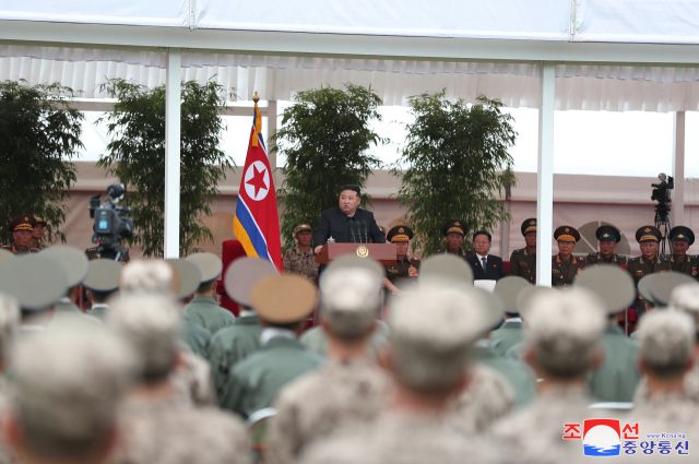 김 위원장은 격려 연설을 통해 "인민보위전에서 용감했고, 능숙했고, 주저없었던 것처럼 훈련혁명을 다그쳐 원수를 격멸하는데서도 철저해야 한다"고 말했다.