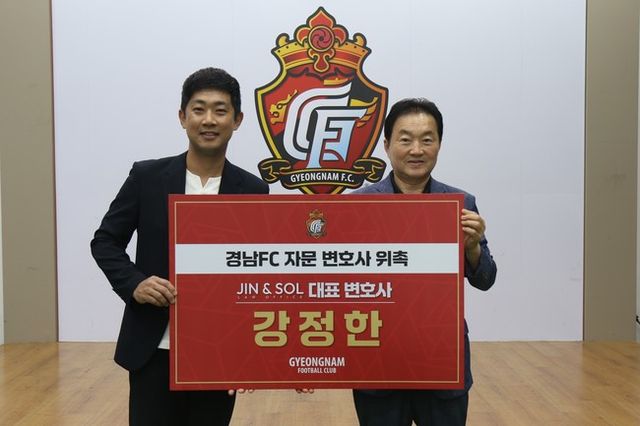[인터풋볼] 신동훈 기자 = 경남FC가 스포츠 분야에 정통한 강정한 변호사를 자문변호사로 선임하고 1일 위촉식을 가졌다. 이번 위촉을 계기로 구단의 준법 활동 등 법률 분야를 강화하겠다는 방침이다.