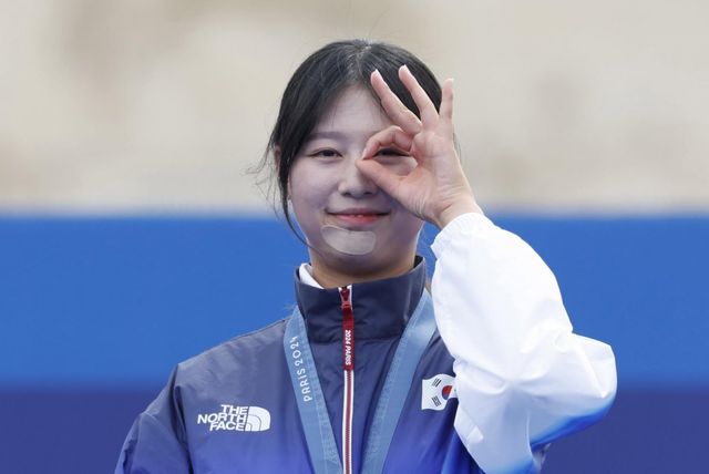 임시현은 3일(한국시간) 레쟁발리드양궁장에서 벌어진 남수현과 2024파리올림픽 양궁 여자개인전 결승에서 세트스코어 7-3으로 이겨 금메달을 목에 걸었다. 여자단체전과 혼성전에 이어 대회 3관왕에 오르며 한국양궁의 ‘신궁’ 계보를 이었다. 파리|뉴시스