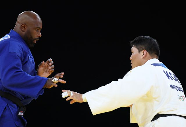 김민종 '진정한 1위를 가려보자' (파리=연합뉴스) 김도훈 기자 = 2일(현지시간) 프랑스 파리 아레나 샹드마르스에서 열린 2024 파리올림픽 유도 남자 100kg 이상급 결승전에서 한국 김민종이 프랑스 테디 리네르와 대결을 펼치고 있다. 2024.8.3 superdoo82@yna.co.kr/2024-08-03 02:44:25/ <저작권자 ⓒ 1980-2024 ㈜연합뉴스. 무단 전재 재배포 금지, ai 학습 및 활용 금지>