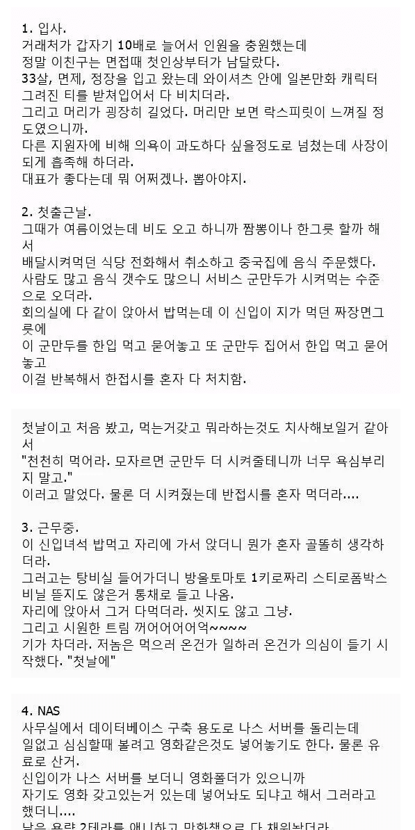 식탐충 신입 짤린 썰 ㅋㅋ,,