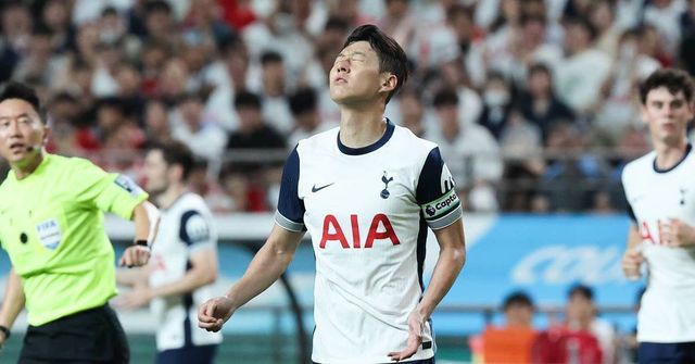 지난 3일 오후 서울 마포구 상암동 서울월드컵경기장에서 열린 쿠팡플레이 시리즈 잉글랜드 프리미어리그 토트넘 홋스퍼와 독일 분데스리가 바이에른 뮌헨의 경기, 후반 토트넘 손흥민이 골 찬스를 놓친 뒤 아쉬워하고 있다 / 뉴스1