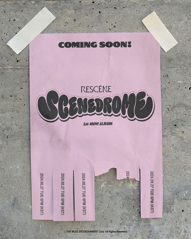 공개된 포스터에는 리센느의 첫 미니앨범 ‘SCENEDROME’과 컴백일만 심플하게 적혀 있어 보는 이들을 궁금증을 자아낸다. 벽에 부착된 커밍순 포스터는 누가 찢어 가져간 흔적이 남아있어, 컴백 카운트다운에 접어든 리센느를 더욱 기다리게 만든다.