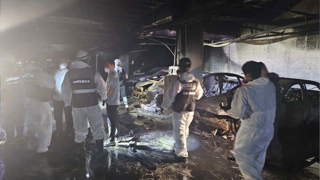 인천 청라 전기차 화재 사고와 관련해 관계기간이 합동 감식을 진행하고 있다. / 뉴스1