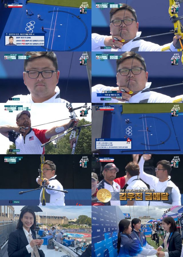 금메달 결정전다운 슛오프 명승부가 펼쳐졌다. 기보배 위원은 “이 순간만큼은 굉장한 집중력을 보여줘야 한다. 결과를 생각 말고, 한 발 한 발에 혼신을 다해서 모든걸 쏟아부어라”라고 김우진을 응원했다.