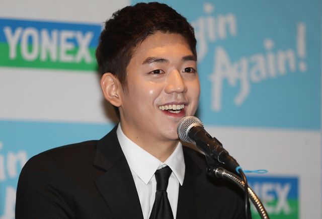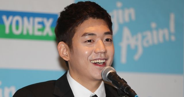 이용대가 2017년 2월 7일 오전 서울 마포구 상암동 스탠포드호텔에서 열린 이용대 요넥스 배드민턴단 입단 기자회견에서 취재진 질문에 답하고 있다. / 연합뉴스