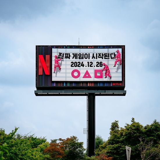 현수막이 걷히자 드러나는 "진짜 게임이 시작된다"라는 카피와 함께 '오징어 게임'의 시그니처 초록색 유니폼을 입은 참가자들이 앞다투어 달려가는 이미지로, 목숨을 걸고 게임을 진행하는 참가자들의 운명을 더욱 드라마틱하게 그린 '오징어 게임' 시즌2에 대한 기대를 한층 더 끌어올린다. 여의도에서도 '오징어 게임' 시즌2 공개를 알리는 광고가 진행되어 오가는 이들의 시선을 사로잡고 있다.