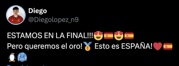 경기 후 스페인 선수들은 모로코에 승리한 기쁨을 SNS를 통해 가감없이 표현했다. 디에고 로페스는 “우리가 결승에 갔다! 하지만 우리는 금메달을 원한다. 그게 스페인”이라며 펭귄과 얼어붙은 얼굴 이모티콘을 사용했다. 펭귄 이모티콘은 춤을 춘 모로코 선수들을 겨냥한 것이었다. 사무도 마찬가지로 펭귄 이모티콘과 웃는 이모티콘을 가득 단 SNS 게시글을 게재했다.