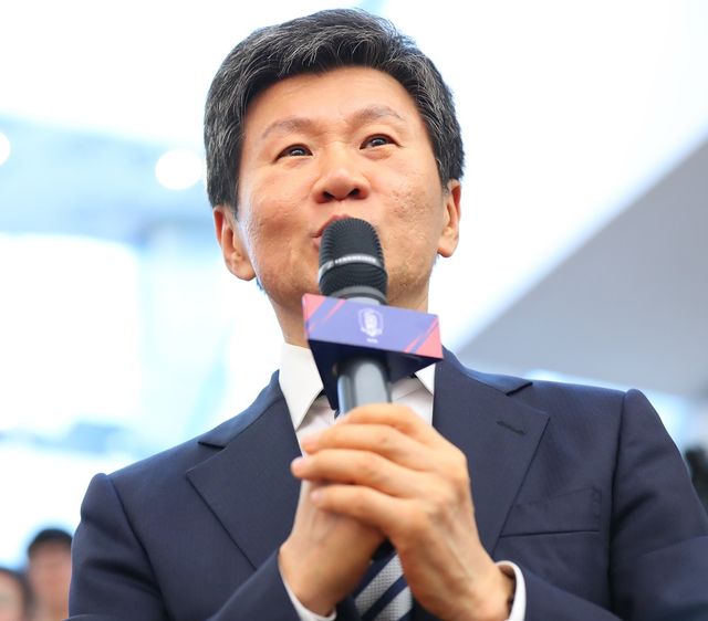 2019년 5월 20일 오후 서울 강남구 스타필드 코엑스몰에서 열린 2019 프랑스 여자월드컵 대표팀 출정식에서 정몽규 KFA회장이 축사하고 있다. / 연합뉴스