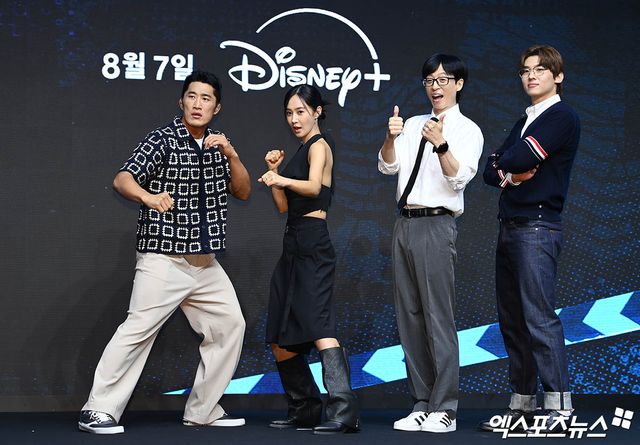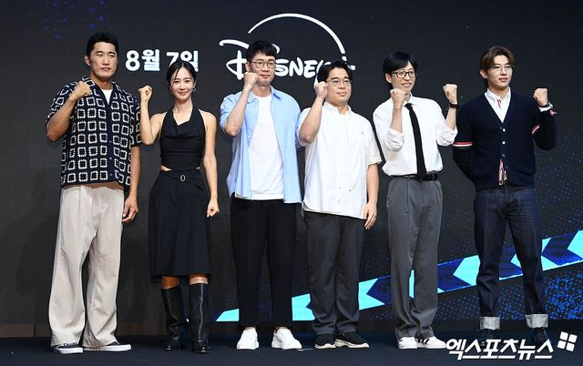 6일 오전 서울 여의도구 콘래드 서울 호텔에서 디즈니+ '더 존: 버텨야 산다' 시즌3의 제작발표회가 진행됐다. 현장에는 유재석, 권유리, 김동현, 덱스, 조효진, 김동진 PD가 참석했다.
