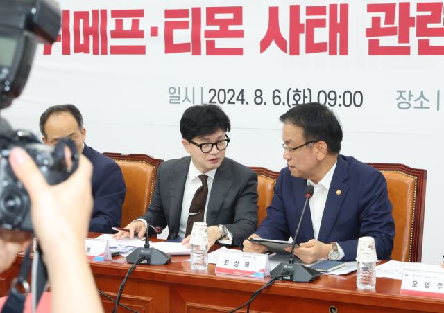 당정은 6일 오전 국회에서 위메프·티몬 사태 관련 당정협의회를 열고 이 같은 대응 방향을 밝혔다. 이날 협의회엔 국민의힘에서 한동훈 대표, 추경호 원내대표, 김상훈 정책위의장이, 정부 측에서는 최상목 기획재정부 장관 겸 경제부총리, 오영주 중소벤처기업부 장관, 이복현 금융감독원장 등이 참석했다.