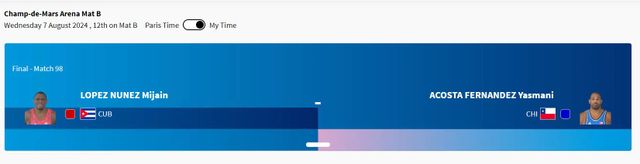 결승전 상대는 미자인의 오랜 제자인 칠레의 야스마니 아코스타 페르난데스 (쿠바 출생)