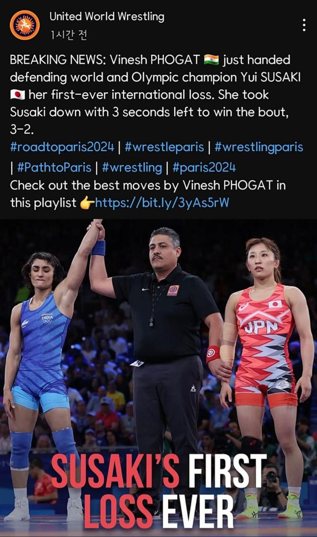 여자레슬링 -50kg 절대강자였던 유이사사키(일본)가 인생처음으로 패배했네요