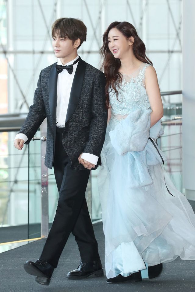방송인 진화(왼쪽) 함소원 부부가 2019년 11월 25일 오후 서울 강남구 코엑스 오디토리움에서 열린 '소비자의 날' 문화·연예 시상식에 참석하고 있다. / 연합뉴스