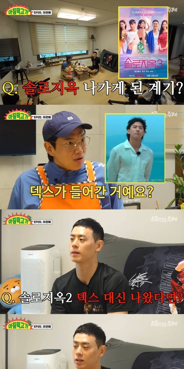 6일 유튜브 채널 '스튜디오 수제'에는 "'덱스는 제가 이겨요' 솔로지옥3 몰표남 이관희 모두를 놀라게 한 자신감 | 아침먹고 가2 EP.20"라는 제목의 영상이 게재됐다.