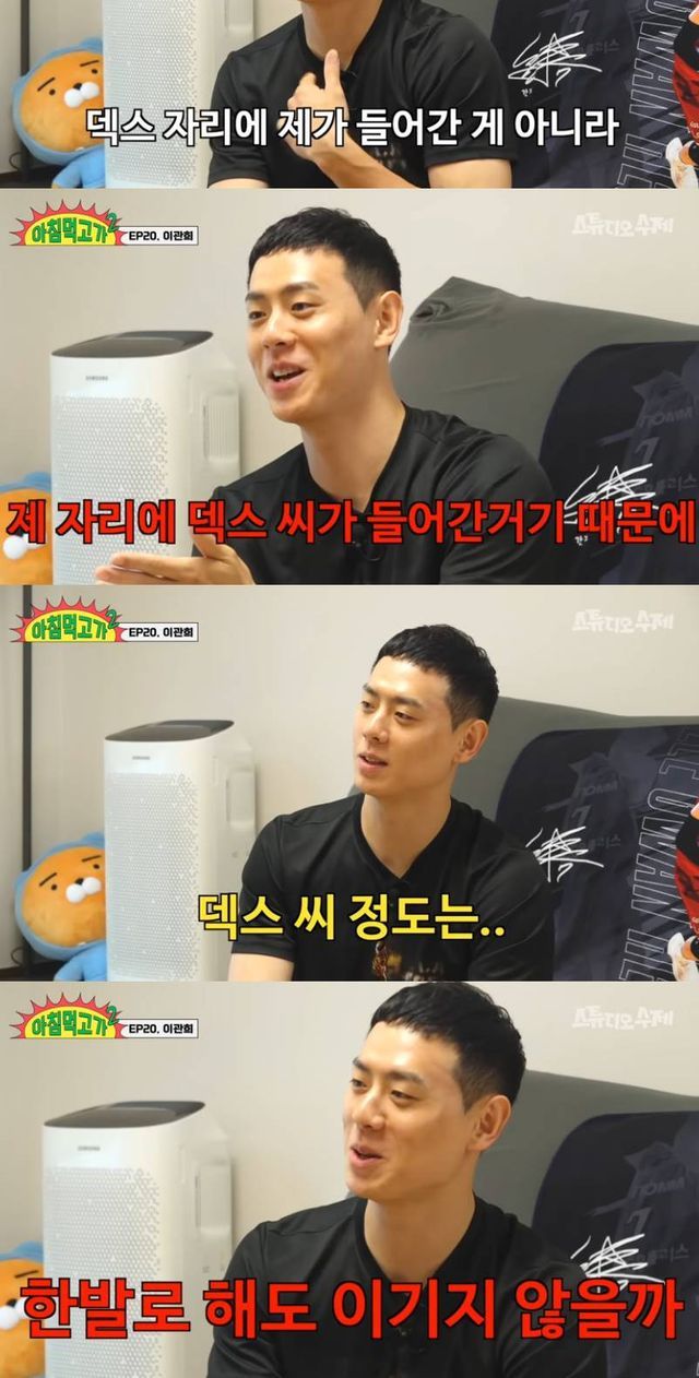 이관희는 이에 "덱스 자리에 제가 들어간 게 아니라 제자리에 덱스가 들어간 거기 때문에. 이건 팩트"라며 자신감 넘치는 면모를 보였다. 그러면서 "같이 나갔어도 재밌었을 거라고 생각한다"라고 덧붙였다.