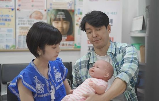 직후 심형탁은 실제 아기와 비슷하게 제작된 인형을 보건소 직원에게 건네받아 조심스레 안아본다.