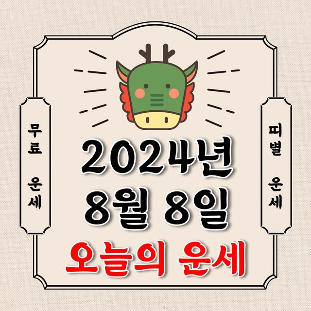 오늘의 운세 2024년 8월 8일 목요일 (음력 7월 5일 / 띠별 운세 / 생년월일 운세)에 대해 알아 보겠습니다.