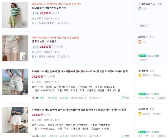 안녕하세요, 소미영어입니다. 우리는 반바지, 짧은 바지를 보통 ‘숏팬츠, 핫팬츠’라고 하죠? 그래서 쇼핑 사이트에서 ‘숏팬츠’라고 검색하면 우리가 생각하는, 여름에 입는 짧은 바지 제품들이 나옵니다.