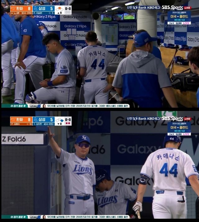 중계 화면만으로 삼성 더그아웃의 분위기를 모두 설명할 순 없다. 카데나스가 아니더라도 문책성으로 교체된 선수에게 인사하는 건 쉽지 않다. 하지만 카데나스의 플레이는 팀 분위기에 결코 득이 되는 행동은 아니었다. 더군다나 삼성은 카데나스로 인해 엔트리 한 자리를 허무하게 날렸다. 열흘 전 병원 검진 결과 아무 이상이 없다는 진단이 나왔고, 갈 길 바쁜 삼성은 조기 복귀를 기대하며 그를 1군 엔트리에서 빼지 않았다. 하지만 열흘 동안 카데나스는 돌아오지 못했다. 무더위에 한 사람 분을 더 뛴 선수들의 체력 소모만 늘었다. 그랬던 그가 돌아와서도 안일한 플레이를 했으니, 시선이 고울 순 없었다.