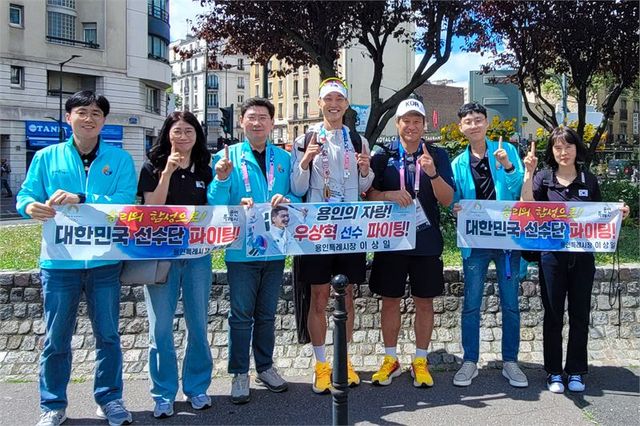 2024 프랑스 파리 올림픽이 절정으로 치닫는 가운데, 높이뛰기 결승을 앞둔 우상혁 선수(용인시청 소속)가 파리를 방문한 이상일 용인시장과 만나 승리를 자신했다.