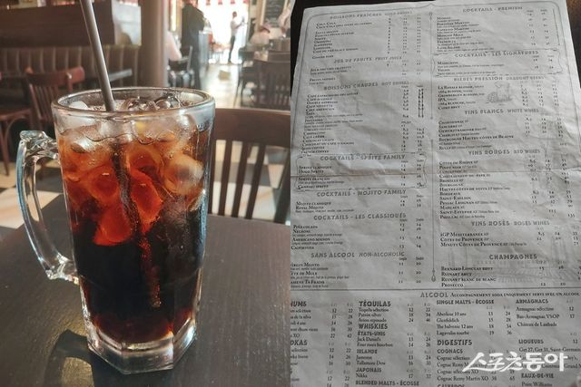 2024파리올림픽 기간 현지 물가는 하늘을 찌를 듯이 높았다. 1일(한국시간) 남녀 경보 20㎞가 열린 에펠탑과 트로카데로 광장 일원에선 체리콜라 1리터(왼쪽) 가격이 22유로(3만3000원)에 이르렀다. 파리|권재민 기자 jmart220@donga.com