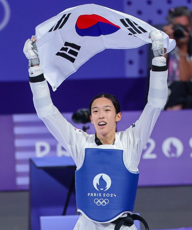 한국 태권도는 지난 7일 박태준(20·경희대)이 남자 58kg급에서 금메달을 수확한 가운데 이틀 연속 파리에서 애국가를 울렸다. 김유진은 생애 처음으로 밟은 올림픽 무대를 정복하고 금메달을 목에 걸었다.