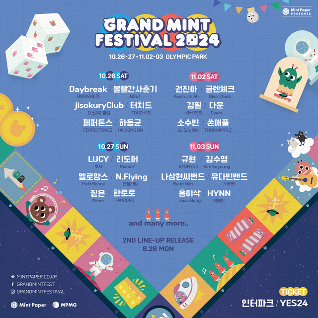 ‘GMF2024’의 주요 일정을 비롯한 다양한 정보는 주최사인 민트페이퍼 홈페이지와 ‘그랜드 민트 페스티벌’ 공식 SNS를 통해 확인 가능하다.